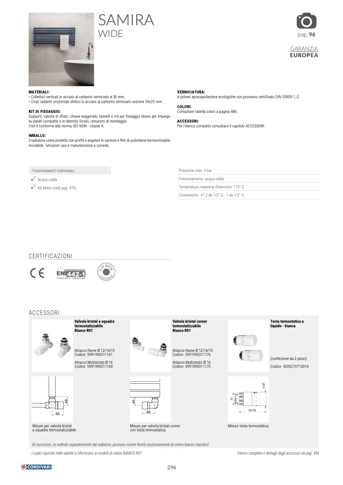 Gli accessori, se ordinati separatamente dal radiatore, possono essere forniti esclusivamente di colore bianco standard