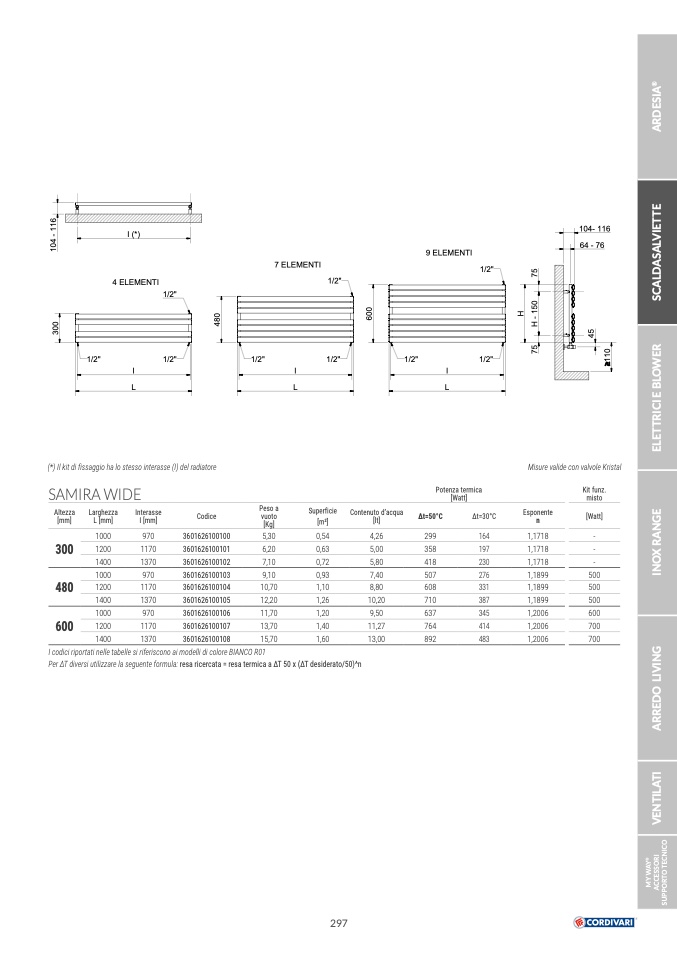 Per ΔT diversi utilizzare la seguente formula: resa ricercata = resa termica a ΔT 50 x (ΔT desiderato/50)^n