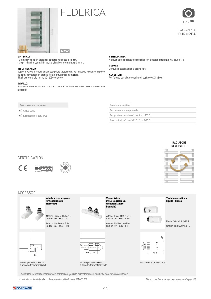 Gli accessori, se ordinati separatamente dal radiatore, possono essere forniti esclusivamente di colore bianco standard