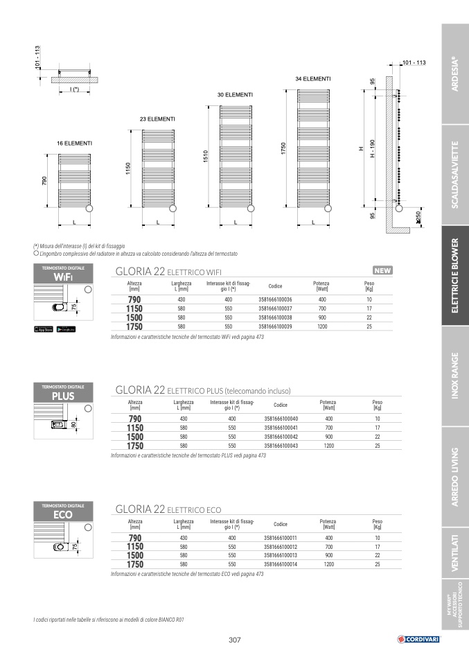 I codici riportati nelle tabelle si riferiscono ai modelli di colore BIANCO R01