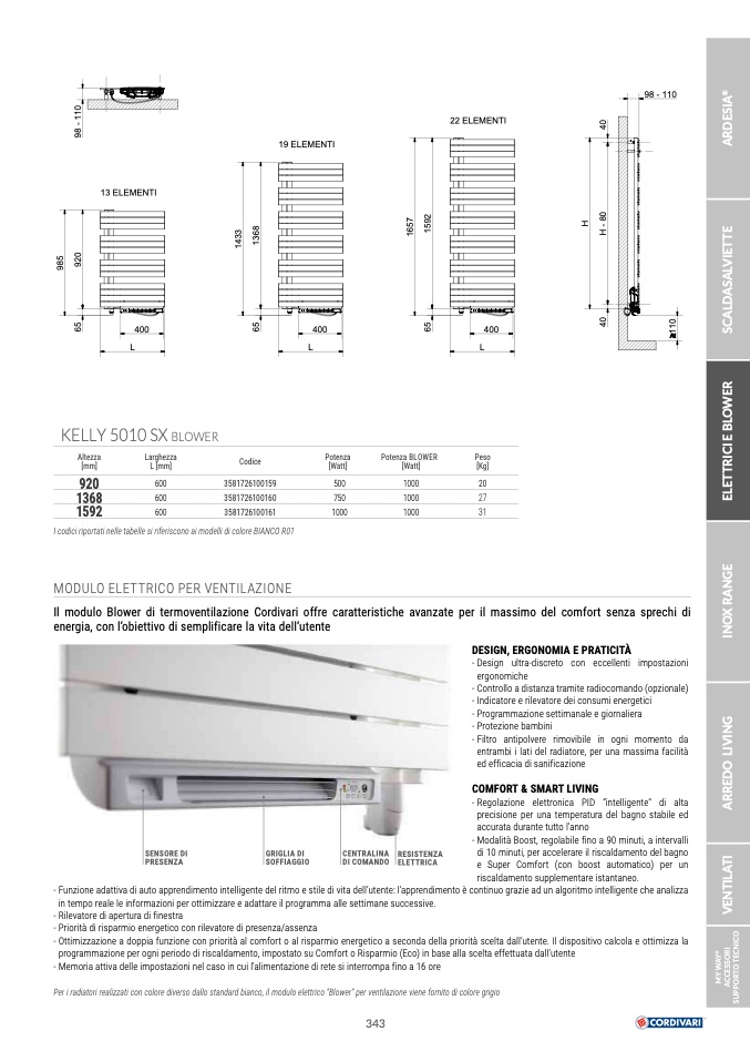 Per i radiatori realizzati con colore diverso dallo standard bianco, il modulo elettrico "Blower" per ventilazione viene fornito di colore grigio