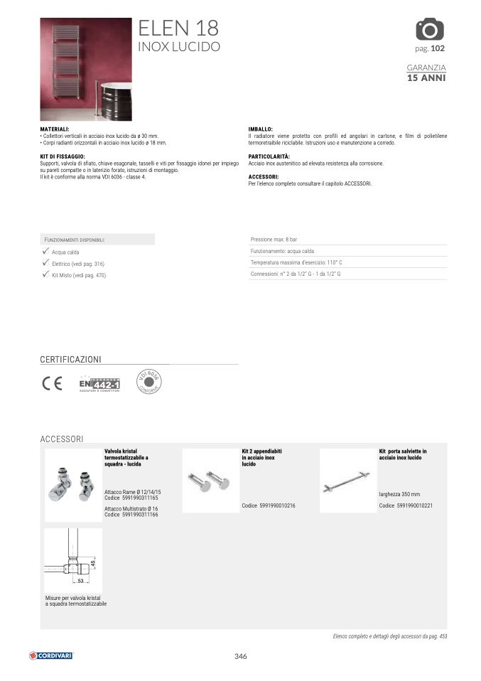 • Corpi radianti orizzontali in acciaio inox lucido ø 18 mm.