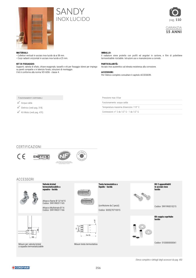 • Collettori verticali in acciaio inox lucido da ø 38 mm.
