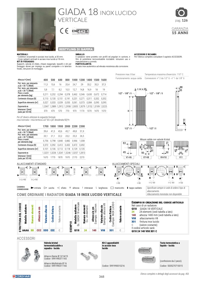 • Corpi radianti verticali in acciaio inox lucido ø 18 mm.