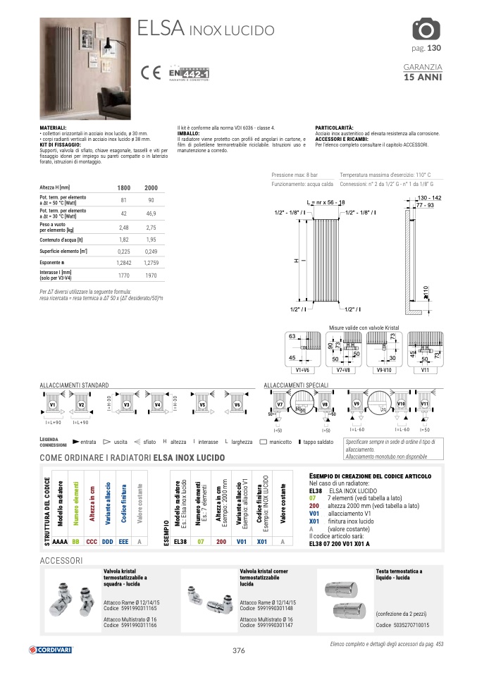 • corpi radianti verticali in acciaio inox lucido ø 38 mm.