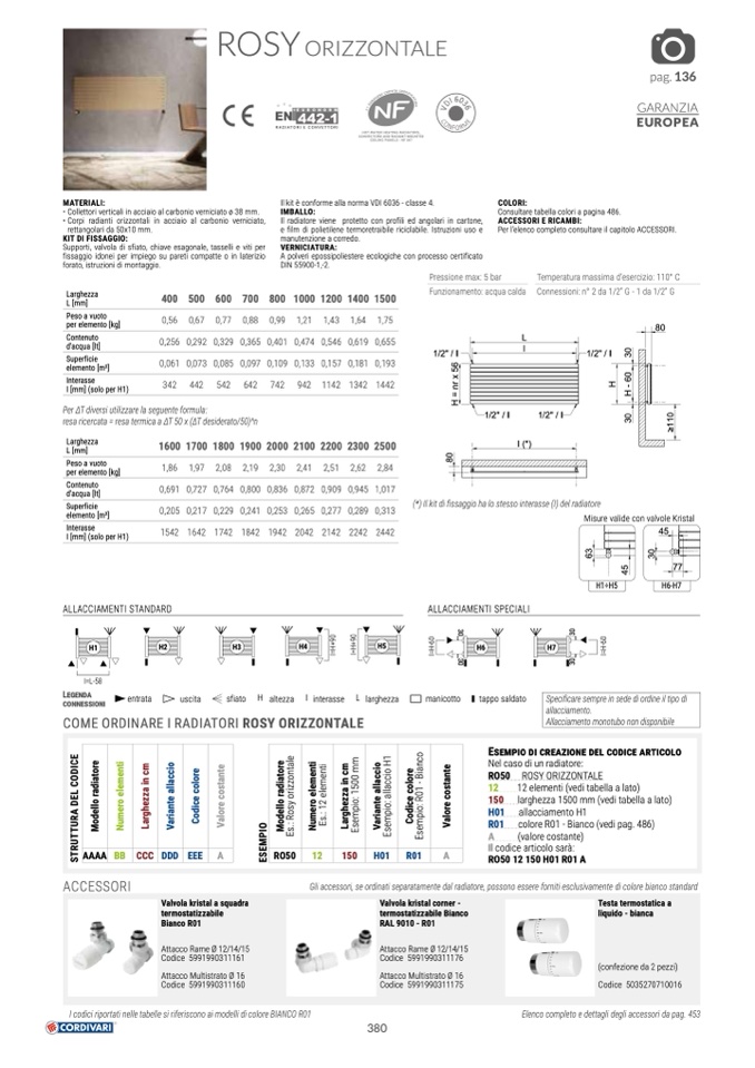 Gli accessori, se ordinati separatamente dal radiatore, possono essere forniti esclusivamente di colore bianco standard
