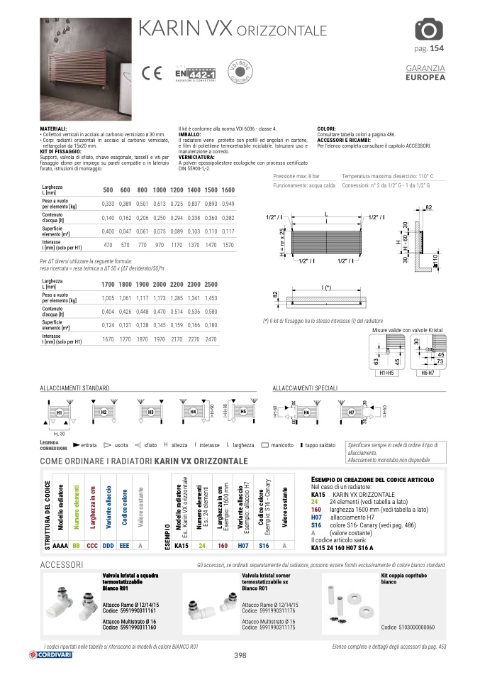 Gli accessori, se ordinati separatamente dal radiatore, possono essere forniti esclusivamente di colore bianco standard