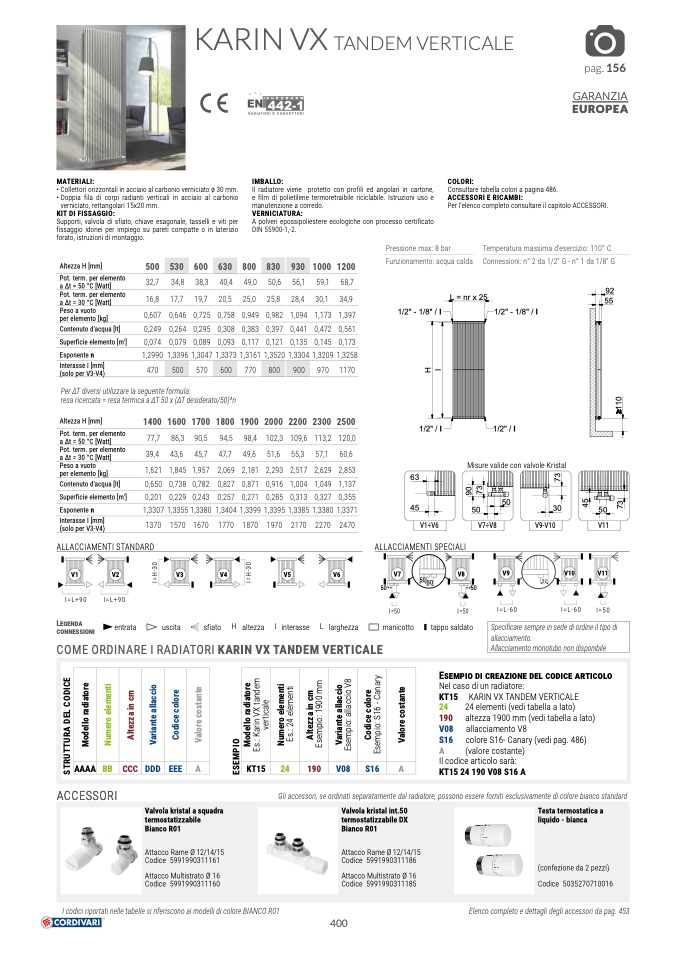 Gli accessori, se ordinati separatamente dal radiatore, possono essere forniti esclusivamente di colore bianco standard