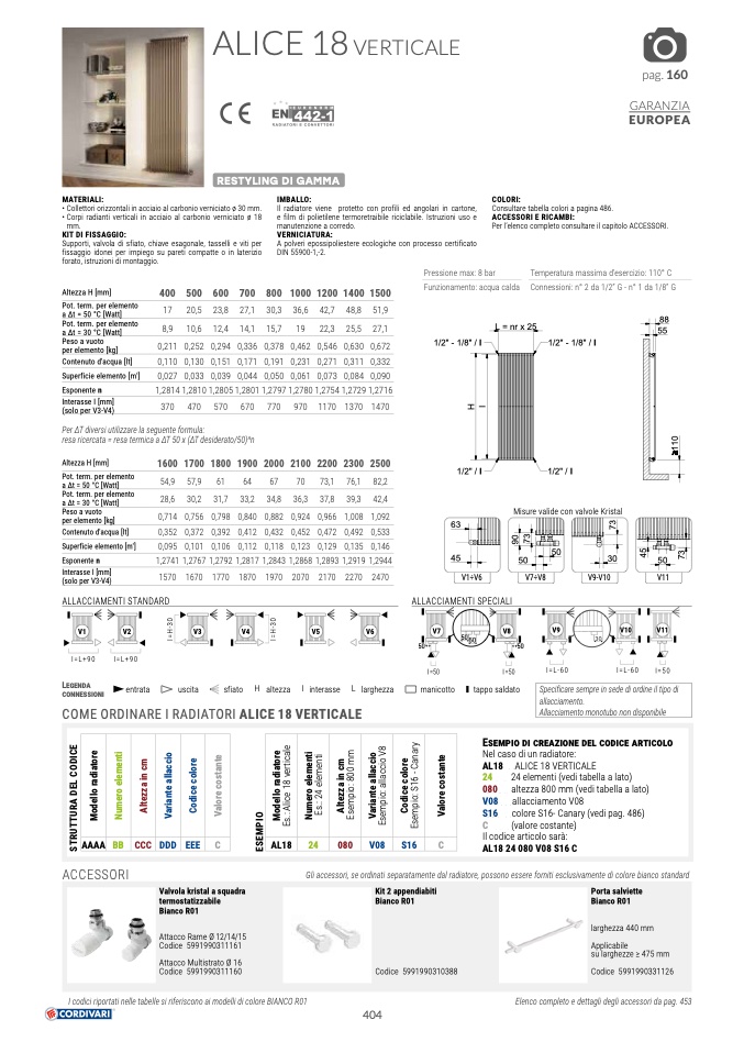 Gli accessori, se ordinati separatamente dal radiatore, possono essere forniti esclusivamente di colore bianco standard