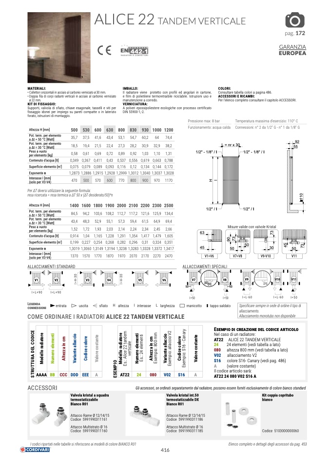 Gli accessori, se ordinati separatamente dal radiatore, possono essere forniti esclusivamente di colore bianco standard