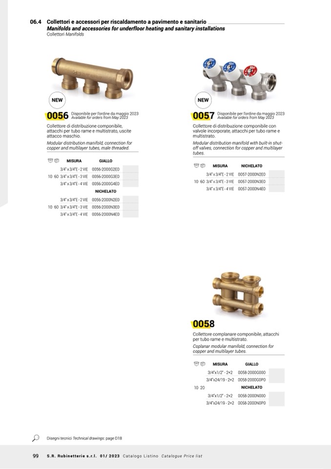 99 S.R. Rubinetterie s.r.l. 01/ 2023 Catalogo Listino Catalogue Price list