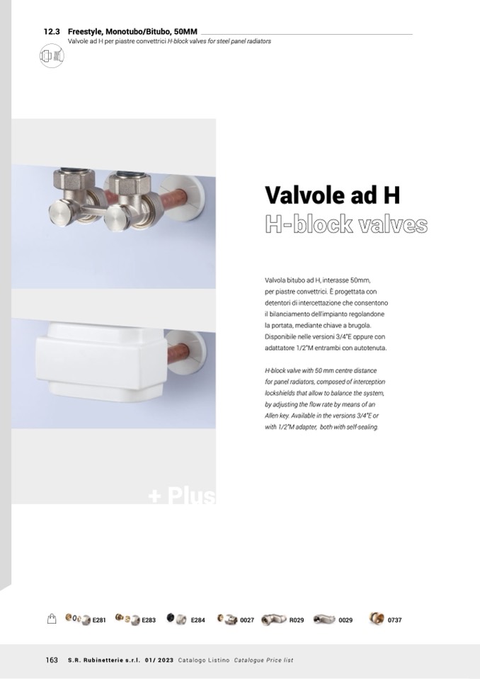 Valvole ad H per piastre convettrici H-block valves for steel panel radiators