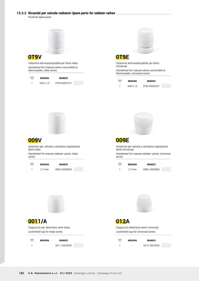 185 S.R. Rubinetterie s.r.l. 01/ 2023 Catalogo Listino Catalogue Price list