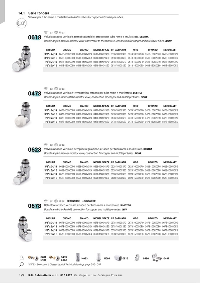 199 S.R. Rubinetterie s.r.l. 01/ 2023 Catalogo Listino Catalogue Price list