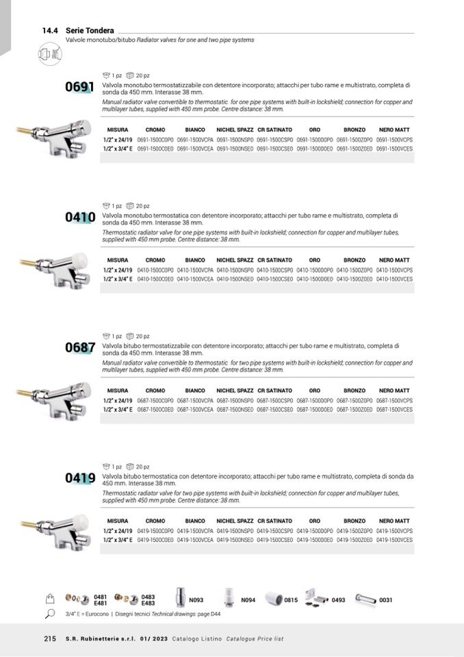 215 S.R. Rubinetterie s.r.l. 01/ 2023 Catalogo Listino Catalogue Price list