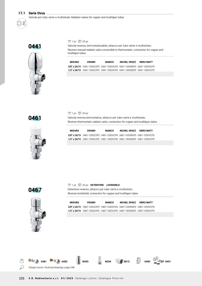 233 S.R. Rubinetterie s.r.l. 01/ 2023 Catalogo Listino Catalogue Price list