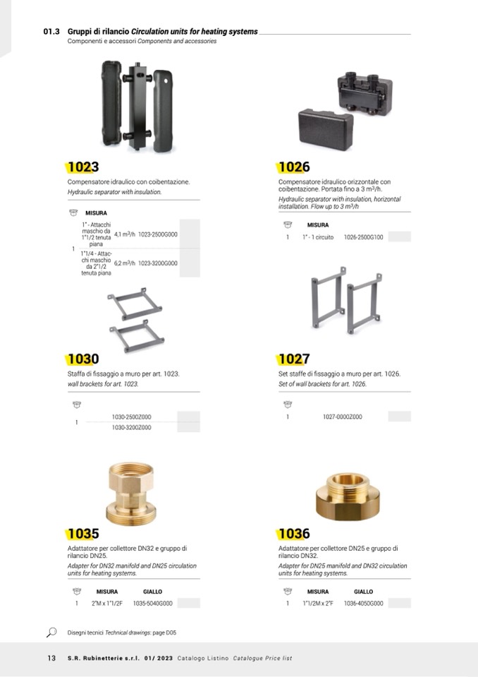 13 S.R. Rubinetterie s.r.l. 01/ 2023 Catalogo Listino Catalogue Price list