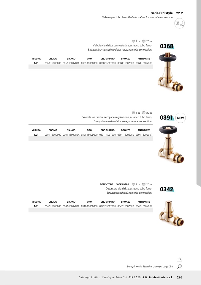 Catalogo Listino Catalogue Price list 01/ 2023 S.R. Rubinetterie s.r.l.