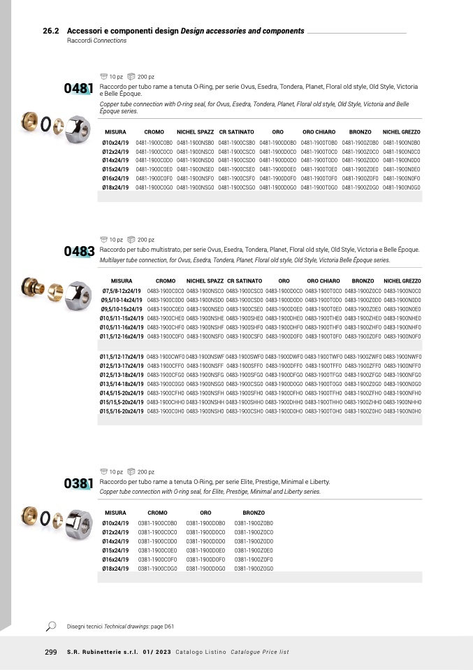 299 S.R. Rubinetterie s.r.l. 01/ 2023 Catalogo Listino Catalogue Price list