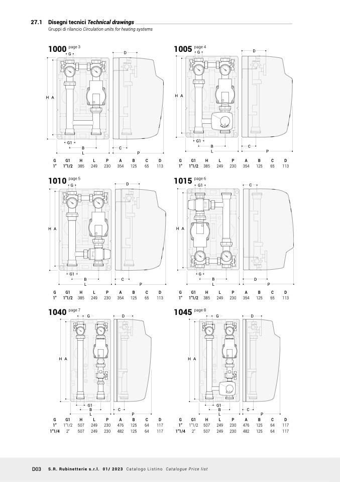 D03 S.R. Rubinetterie s.r.l. 01/ 2023 Catalogo Listino Catalogue Price list