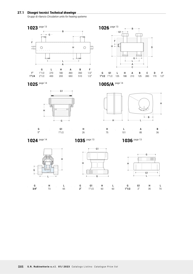 D05 S.R. Rubinetterie s.r.l. 01/ 2023 Catalogo Listino Catalogue Price list