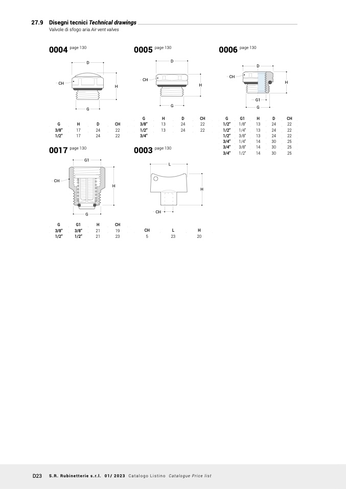 D23 S.R. Rubinetterie s.r.l. 01/ 2023 Catalogo Listino Catalogue Price list