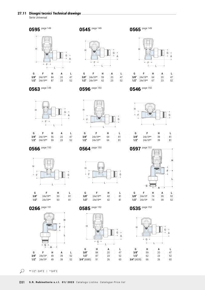 D31 S.R. Rubinetterie s.r.l. 01/ 2023 Catalogo Listino Catalogue Price list