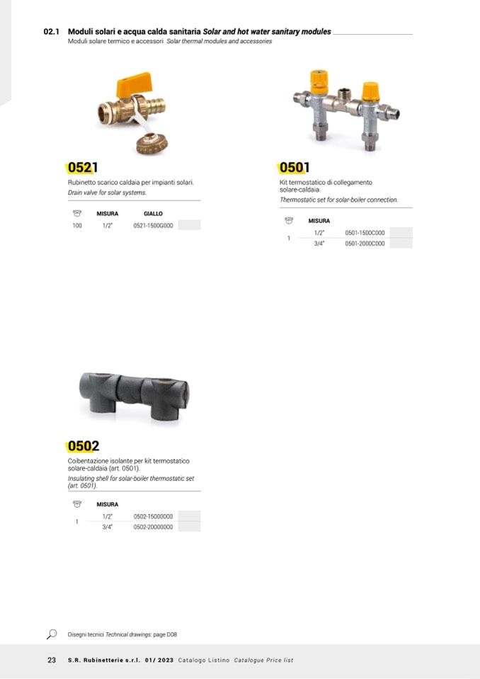 23 S.R. Rubinetterie s.r.l. 01/ 2023 Catalogo Listino Catalogue Price list