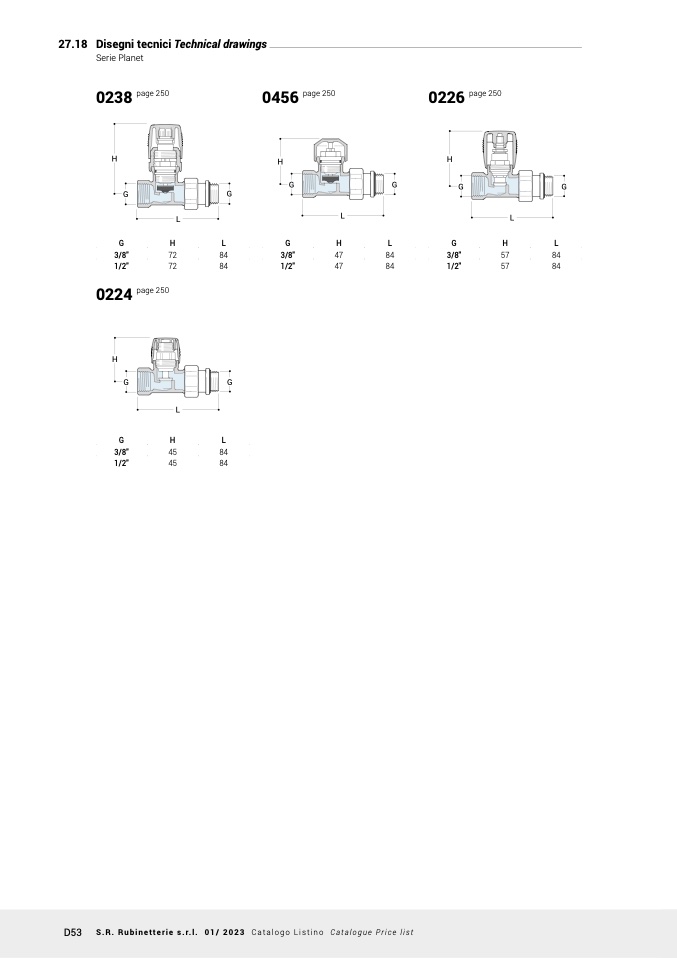 D53 S.R. Rubinetterie s.r.l. 01/ 2023 Catalogo Listino Catalogue Price list