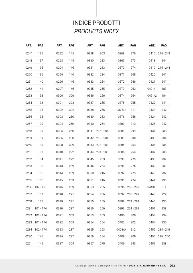 Catalogo Listino Catalogue Price list 01/ 2023 S.R. Rubinetterie s.r.l.