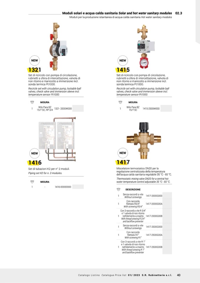 Catalogo Listino Catalogue Price list 01/ 2023 S.R. Rubinetterie s.r.l.
