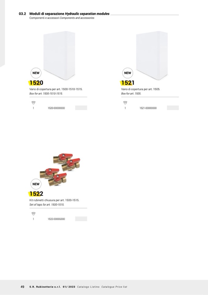 49 S.R. Rubinetterie s.r.l. 01/ 2023 Catalogo Listino Catalogue Price list