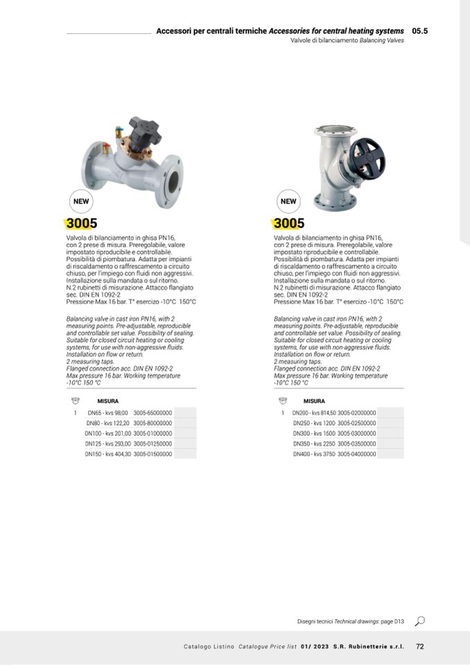 Catalogo Listino Catalogue Price list 01/ 2023 S.R. Rubinetterie s.r.l.