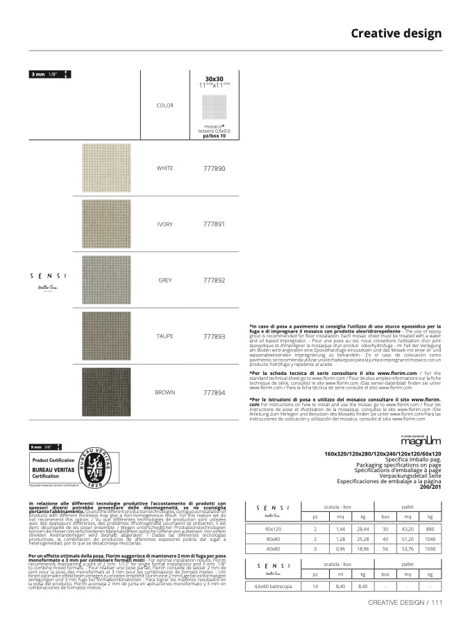 instructions de pose et d’utilisation de la mosaïque, consultez le site www.florim.com /Die