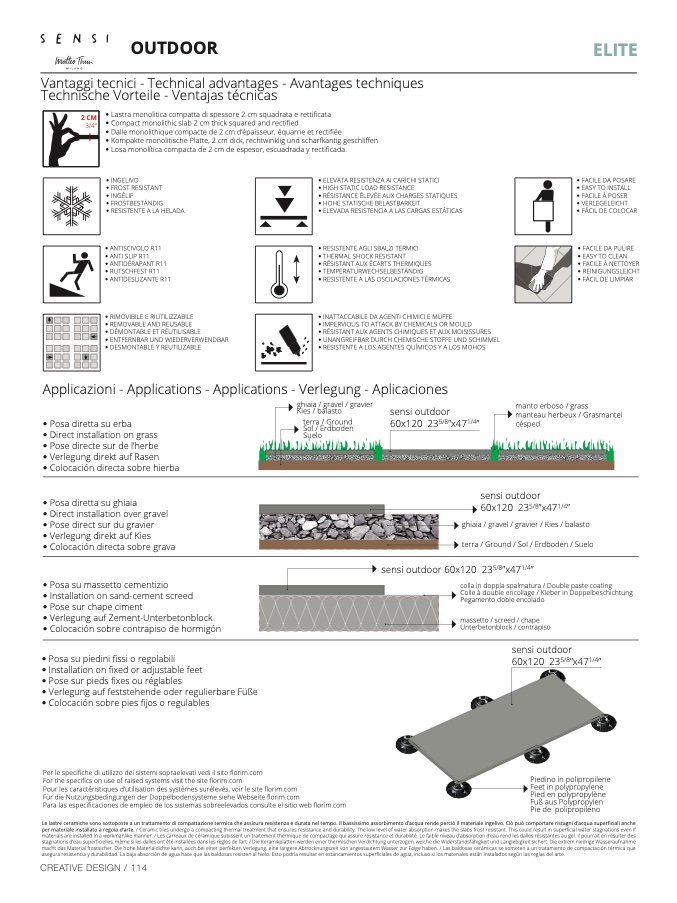 per materiale installato a regola d’arte. / Ceramic tiles undergo a compacting thermal treatment that ensures resistance and durability. The low level of water absorption makes the slabs frost resistant. This could result in superficial water stagnations even if