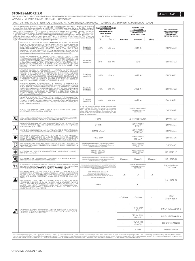 CARATTERISTICHE TECNICHE - TECHNICAL CHARACTERISTICS - CARACTERISTIQUES TECHNIQUES - TECHNISCHE EIGENSCHAFTEN - CARACTERÍSTICAS TÉCNICAS