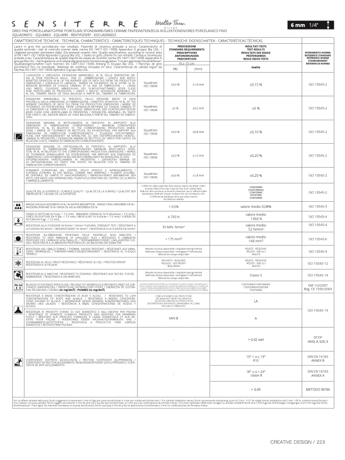 CARATTERISTICHE TECNICHE - TECHNICAL CHARACTERISTICS - CARACTERISTIQUES TECHNIQUES - TECHNISCHE EIGENSCHAFTEN - CARACTERÍSTICAS TÉCNICA