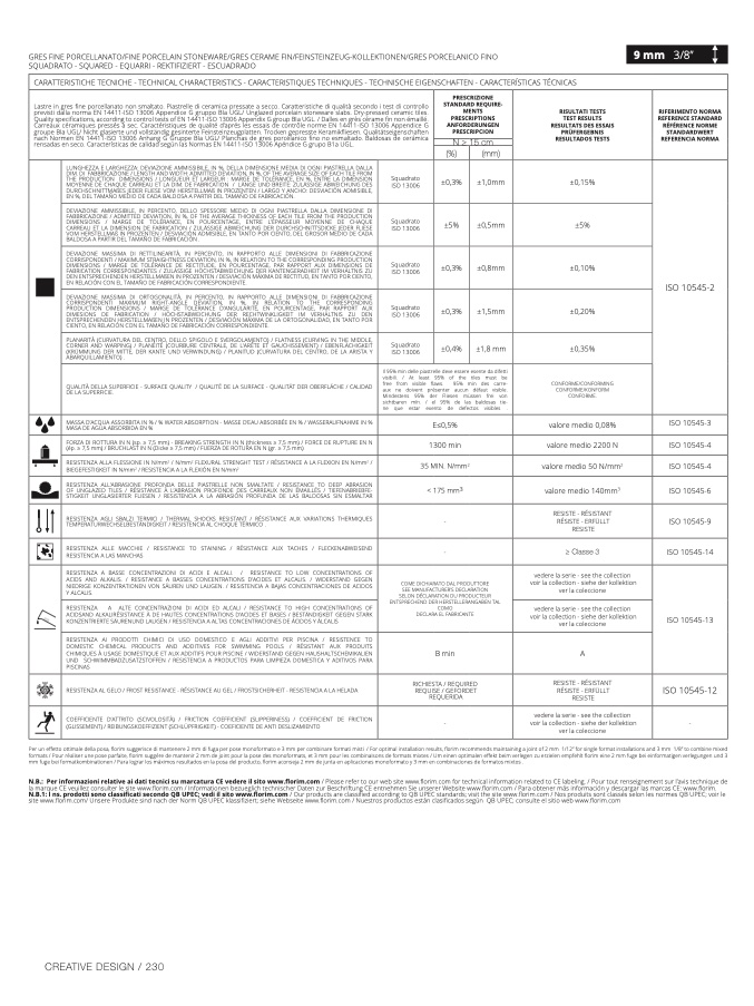 CARATTERISTICHE TECNICHE - TECHNICAL CHARACTERISTICS - CARACTERISTIQUES TECHNIQUES - TECHNISCHE EIGENSCHAFTEN - CARACTERÍSTICAS TÉCNICA