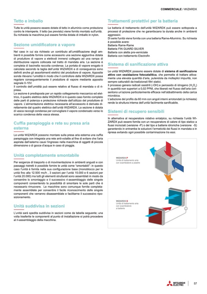 rettamente dal quadro elettrico dell’unità WIZARDX. La sezione è dotata