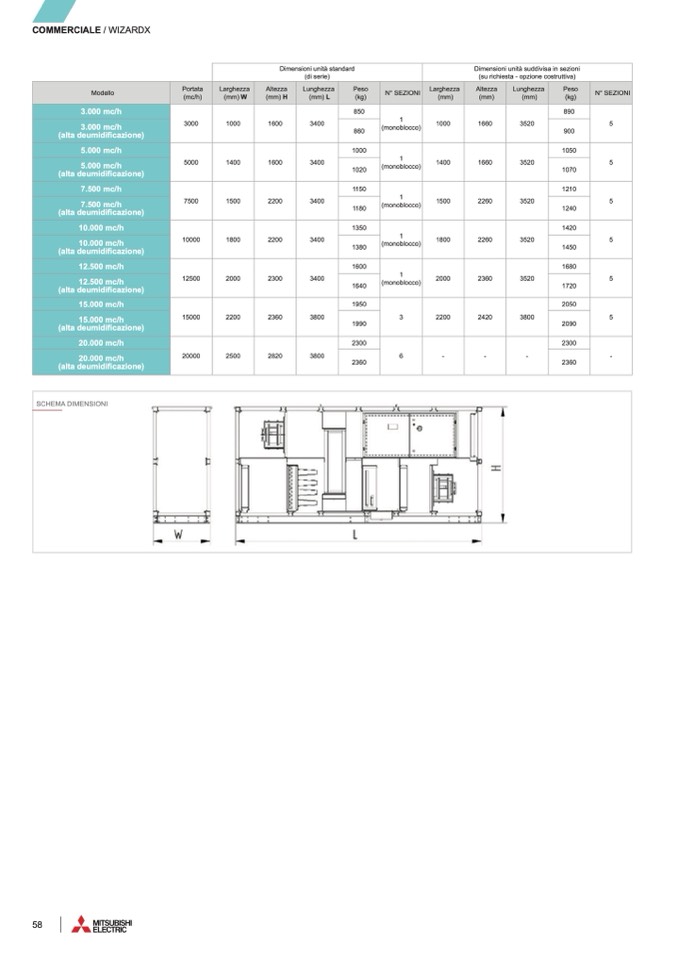 Dimensioni unità suddivisa in sezioni