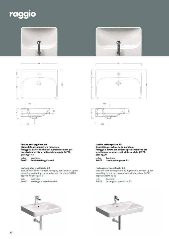 rectangular washbasin 75