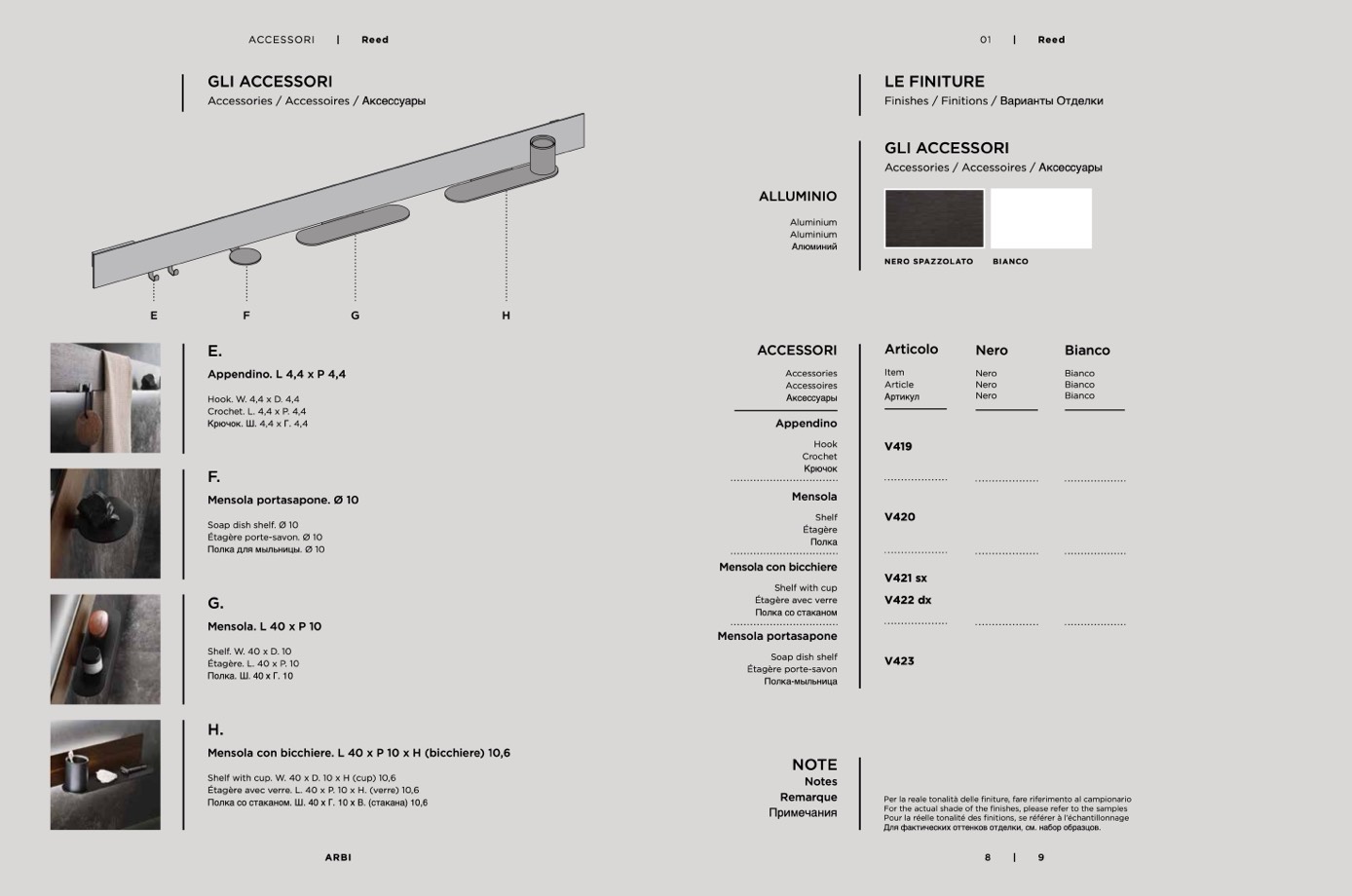 Per la reale tonalità delle finiture, fare riferimento al campionario