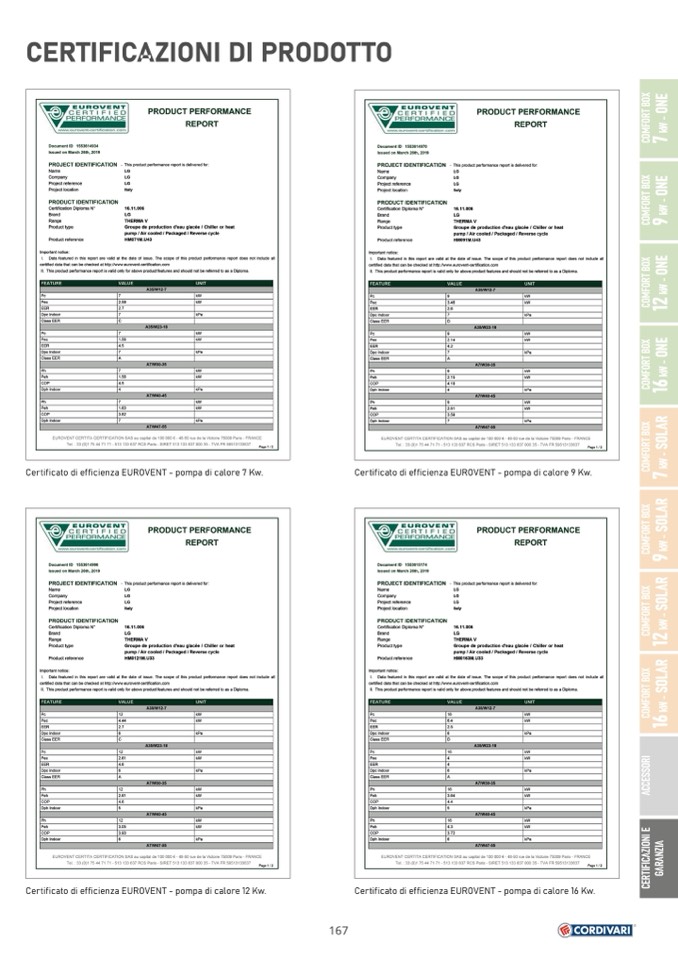 Certificato di efficienza EUROVENT - pompa di calore 16 Kw.