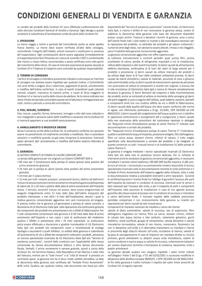 Le vendite dei prodotti della Cordivari Srl sono effettuate conformemente alle