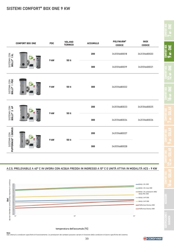 A.C.S. PRELEVABILE A 40° C IN UN’ORA CON ACQUA FREDDA IN INGRESSO A 10° C E UNITÀ ATTIVA IN MODALITÀ ACS - 9 KW