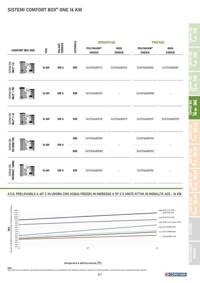 A.C.S. PRELEVABILE A 40° C IN UN’ORA CON ACQUA FREDDA IN INGRESSO A 10° C E UNITÀ ATTIVA IN MODALITÀ ACS - 16 KW