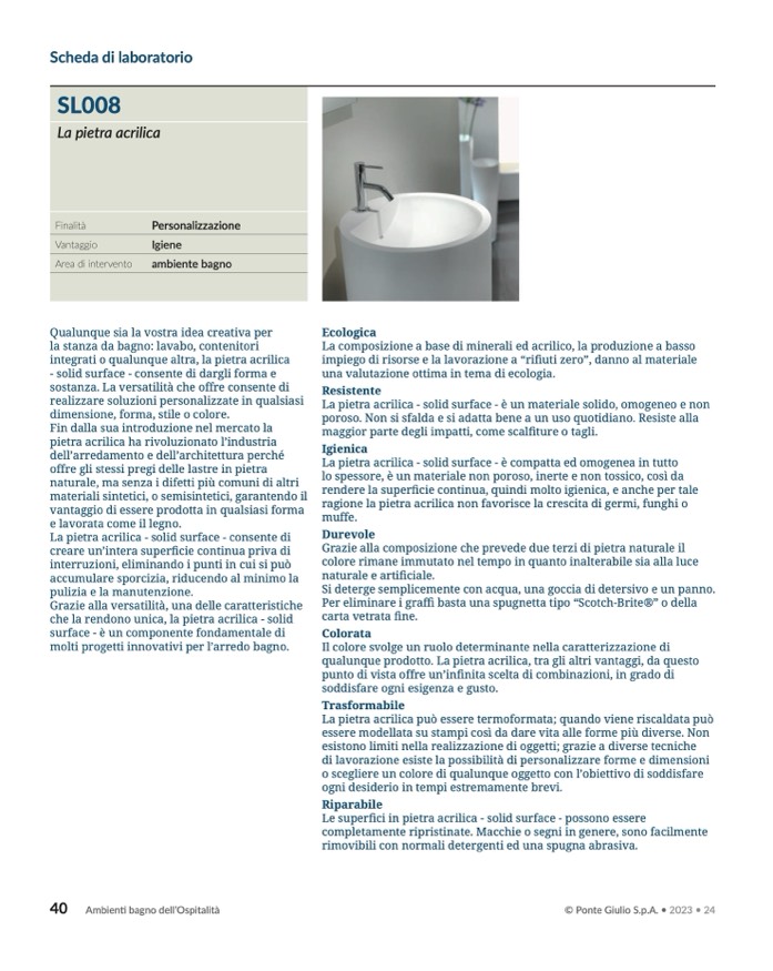 La pietra acrilica - solid surface - è un materiale solido, omogeneo e non