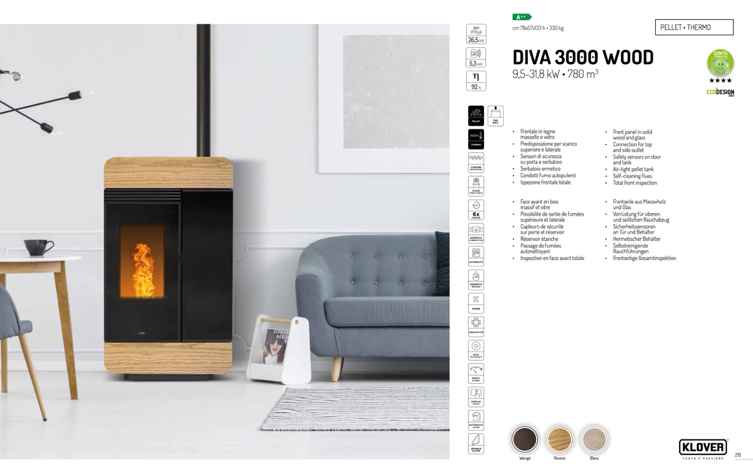 • Self-cleaning flues