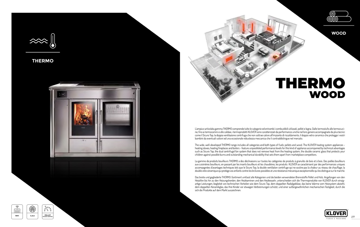 The wide, well-developed THERMO range includes all categories and both types of fuels: pellets and wood. The KLOVER heating system appliances -