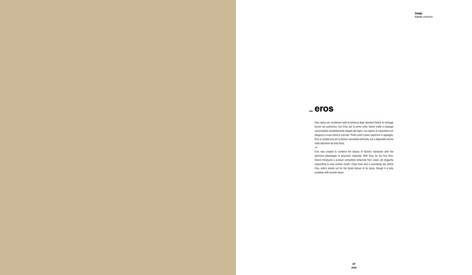 Eros, which stands out for the fluted texture of its doors, though it is also